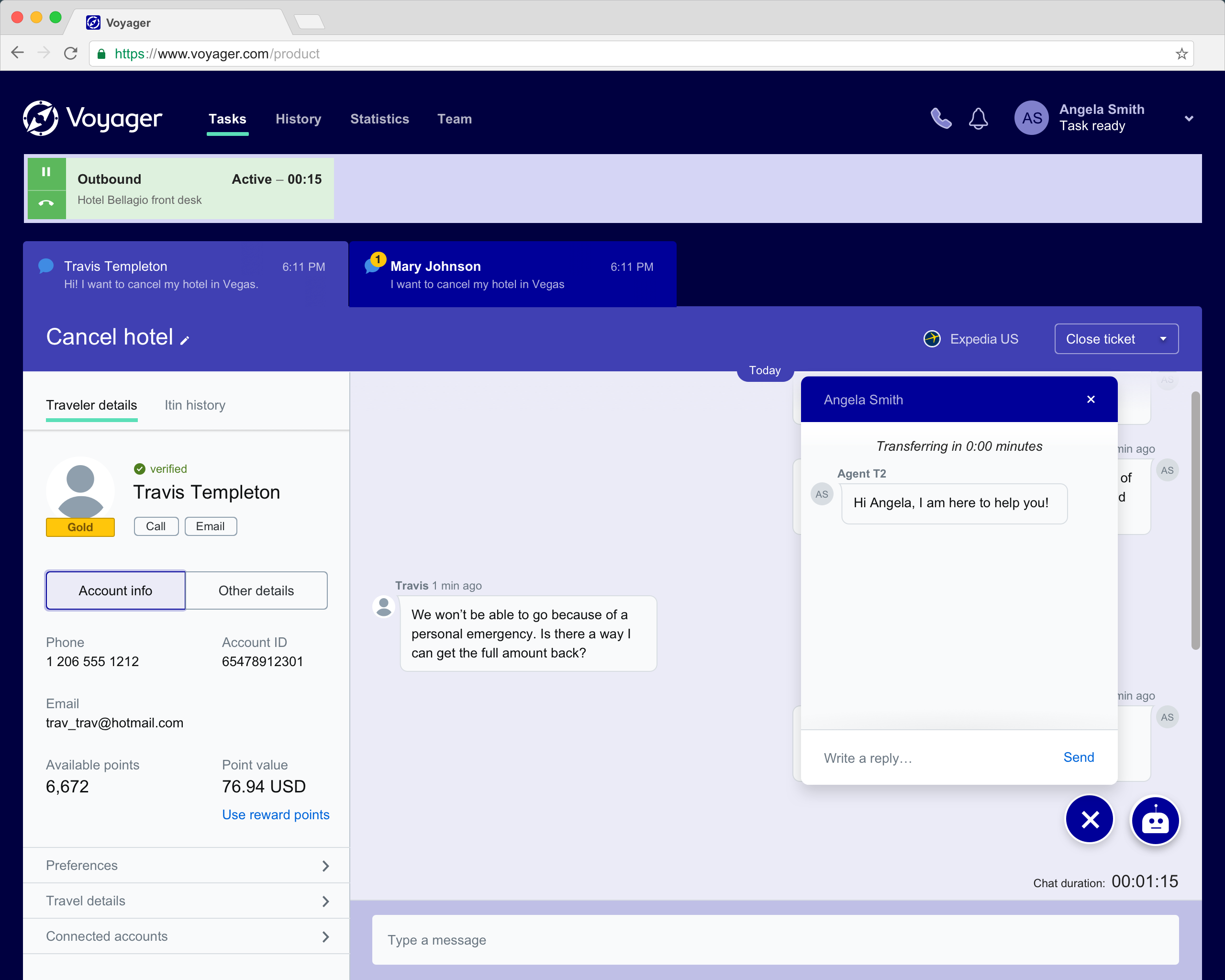 My problem space was to design for complex escalation and transfer cases and to validate the designs through user research. Escalation and transfer functionality allows agents to seek help from their colleagues or higher tier agents and lets the customers to be transferred to a supervisor if requested.
